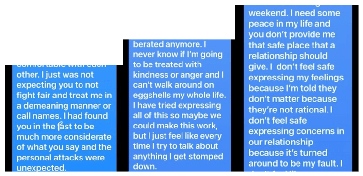 With some prayer, reflection, and wise friends, I have now come to some realizations. First, I didn’t just take his abuse attempts, I refused to cower, I refused to let him blame me for his choices, I refused to accept his behaviors as being okay. I was vocal. I had a voice I didn’t really have in my marriage. I remember telling him once that I was the prize. He asked me who I had been talking to and I said myself. He was so angry that I saw my own value. Second, I recognized the behaviors as being wrong, unhealthy, and sometimes downright cruel. I may not have left quite as soon as I should have, but I also didn’t think what he was doing was normal, unlike my thinking in my marriage. Third, our actual relationship as a couple was only about 4-5 months, even though we were seeing each other regularly for a couple years before that. Before we committed, his tactics were much more covert and not outright abusive and I thought they were fixable. It was so subtle for a long time. It wasn’t until we were official that the control and manipulating came on full force and once it did, I recognized it immediately.