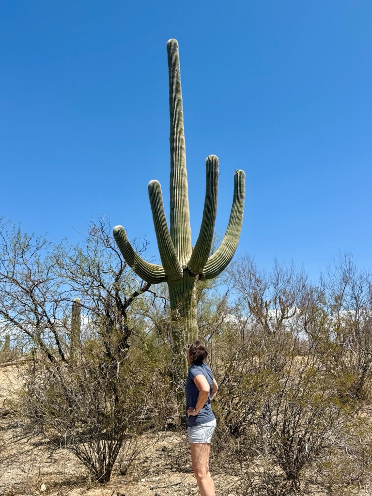 On the way to Seguaro, I stopped at Prada Marfa. It’s an art exhibit just outside of Marfa, TX in the middle of nowhere. It’s a small, but stocked Prada store. You can’t go in, but you can see the shoes and handbags through the windows. There I met Chris. He and his friend were headed to Guadelupe National Park to hike the highest peak in Texas. He took pictures of me in front of the store and asked why I had come there. I told him I was headed to Seguaro from Big Bend, and then on to Cali. We talked about the healing properties of nature, how peaceful it is to be out in it, and how it just seems to recharge you. I told him I was on a sabbatical to have a reset. I needed to be in nature to find myself again. We exchanged numbers so we could send pics of our journeys, and then he asked if he could give me a hug. My being a hugger, of course I said yes! It was truly a beautiful moment.